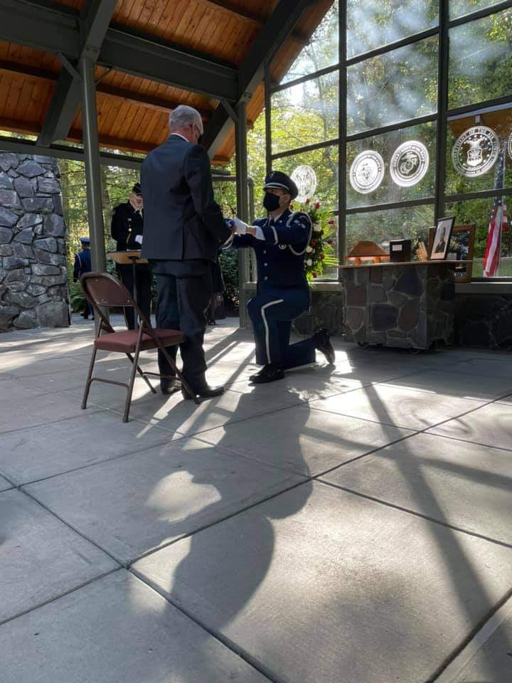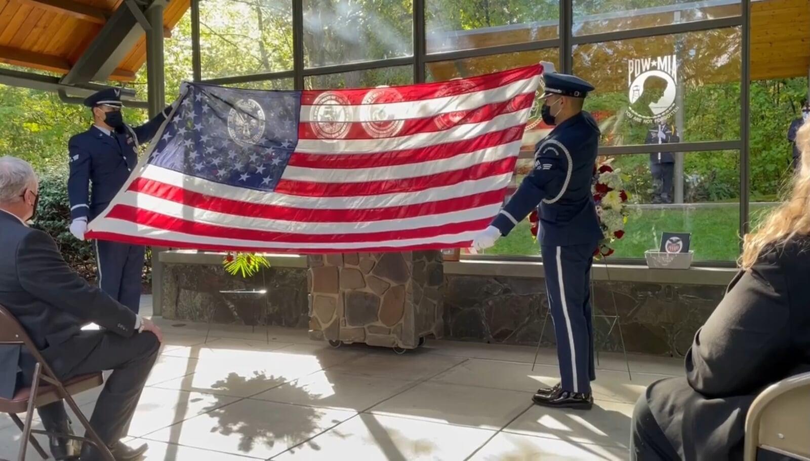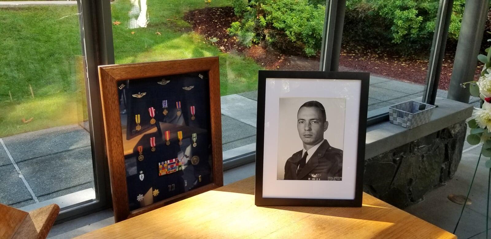 There was a full military salute, the ceremonial folding of the flag, and its presentation to Kent. His medals and photos were on display, a visual tribute to his 28 years of service in the Air Force, including combat rescue missions aboard HH-53C Jolly Greens in Vietnam, and his second career training pilots at Boeing.